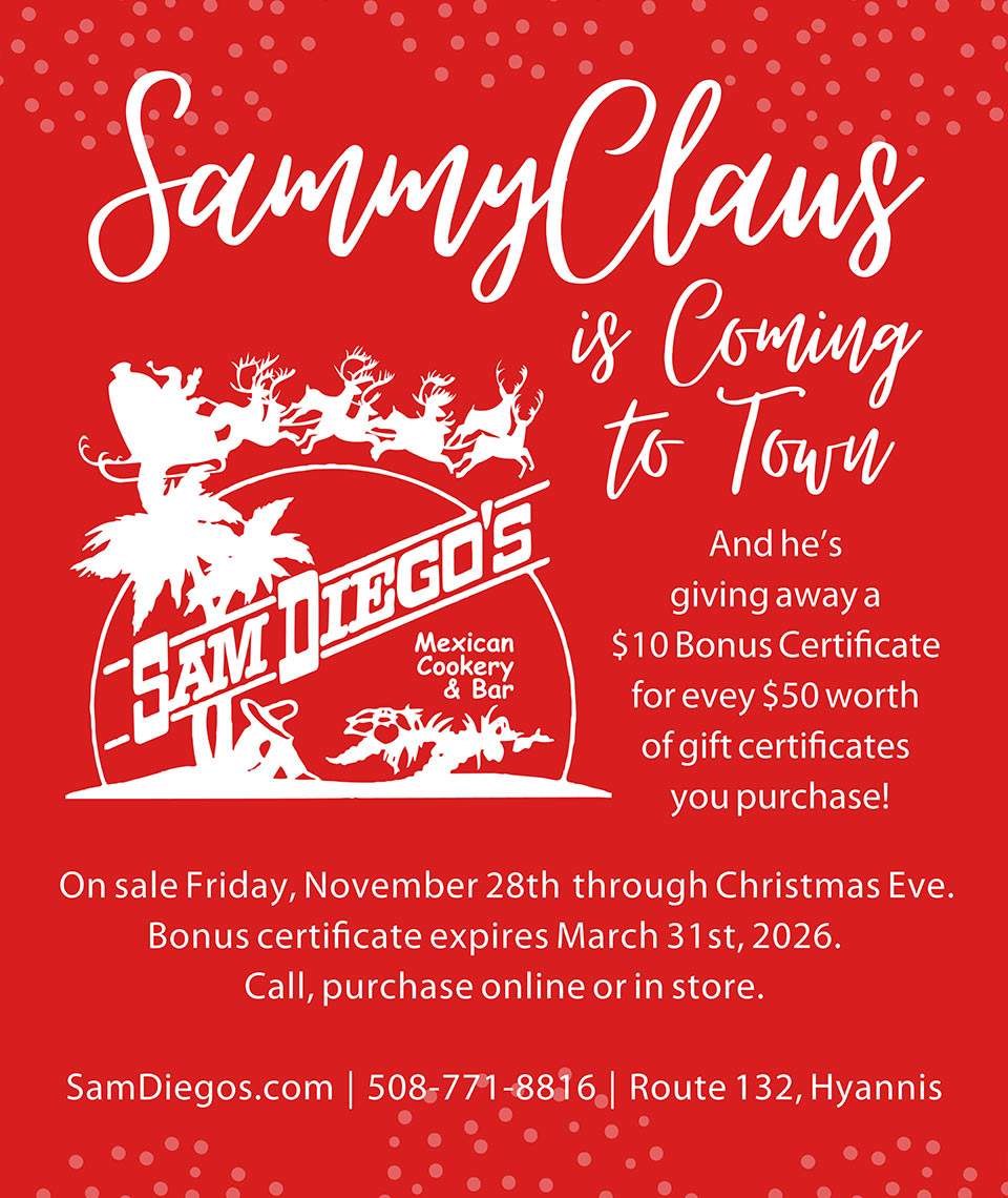 Open since 1982, Sam Diego’s Mexican Cookery and Bar established itself as the “place to go” for Food, Fun and Fiesta on Cape Cod. Independently owned, Sam’s has been a local gathering spot and a festive “refuge” for out-of-towners.