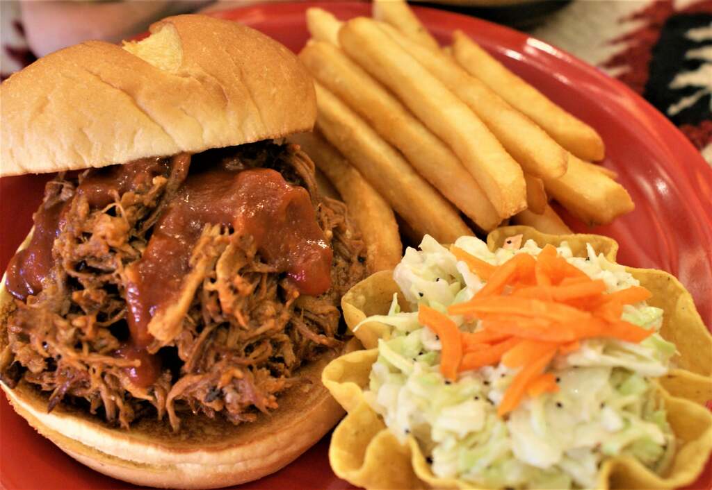 Lunch sized BBQ Pulled Pork on a toasted bun served with our homemade coleslaw and Sam’s Fries.